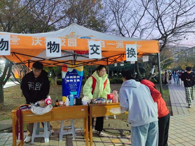 11月18日活动如期举行,各位值班人员分工明确,有序进行活动物品收集、活动海报张贴、置换物品登记等工作,对每个路过的同学做详细的介绍。同学们以物会友,结识新伙伴。现场气氛活跃,吸引了众多同学驻足,大部分同学置换到自己中意的物品,使箱底闲置的物品变成了宝藏。