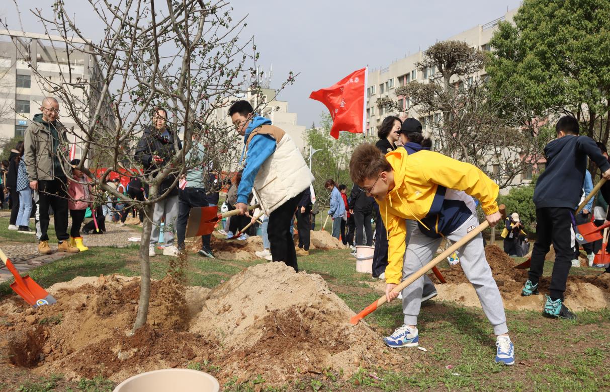 (图为师生共同植树)