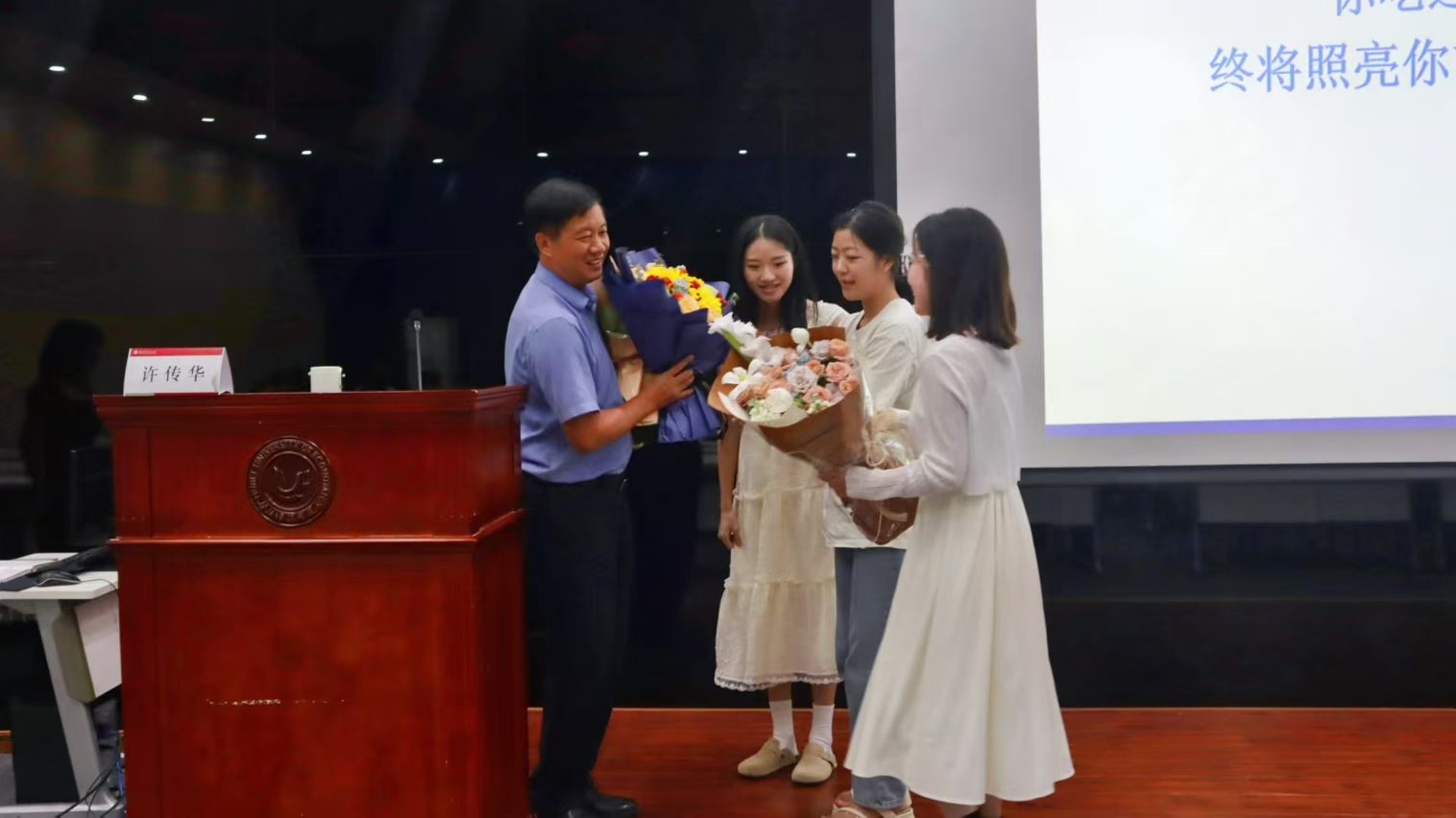 再次见面,谦谦君子。第二次见面是在昨天的讲座上,您为我们讲了两个小时的讲座,您辛苦了。在讲座上,您侃侃而谈,把党的二十届三中全会精神与金融热点交叉传授。作为研一员工,在学术上还需要不断加强,自我学习能力不断提高,努力以许老师作为标杆,向老师看齐,变得更好。提前教师节给您送花,祝您节日快乐,三尺讲台桃李满天下。在办公室开会,那是第一次知道我的名字,是我的不足还没积极发邮件给您,以后多加注意,养成良好习惯。在会上,您最后选择了带我,再次感谢您,或许都是缘分的安排,我将不负韶华,不负遇见。